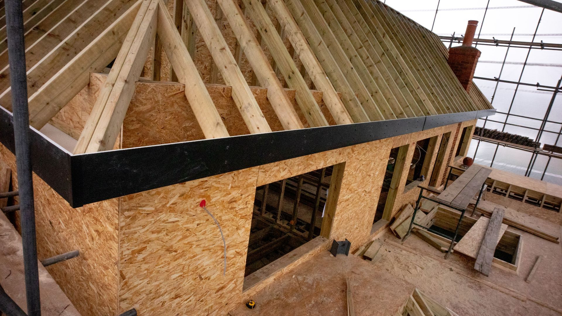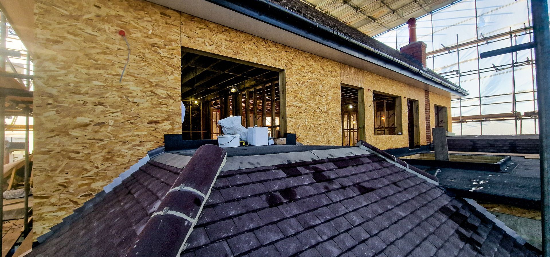 The renovation of the existing detached bungalow property involved a comprehensive transformation, including the complete demolition of the existing roof. The project featured the construction of a new lightweight timber frame for an additional floor, coupled with a redesigned roof. In an effort to manage costs and streamline construction logistics, we opted for a trussed roof system for the hipped roof, minimising the need for extensive steelwork.