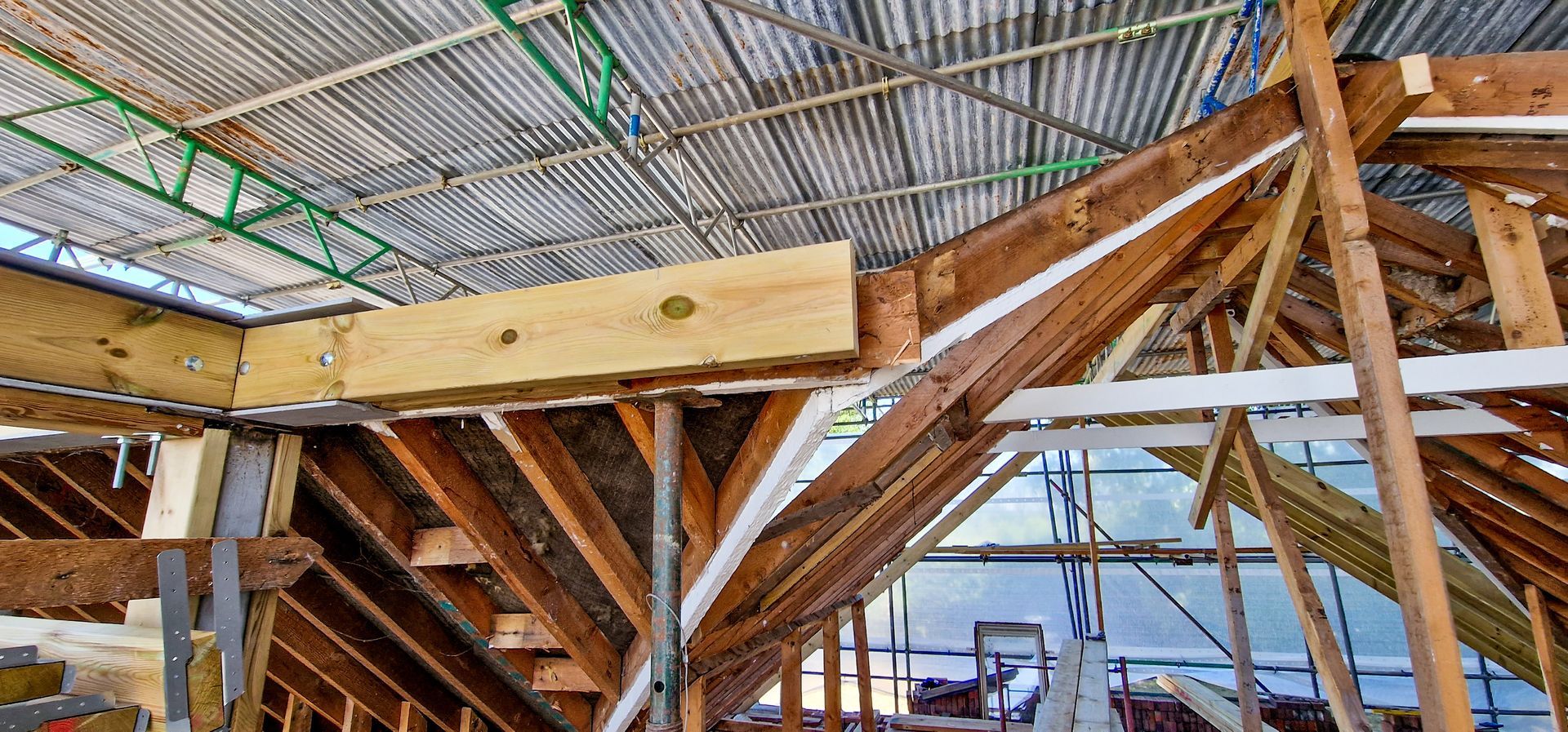 The construction of the new dormer floor employed an A-frame timber construction, emphasising both structural stability and aesthetic appeal. To address large spans, minimal steelwork was strategically incorporated, while smaller spans were formed using flitch timber beams. Prior to construction, collaborative discussions with the builder took place to ensure a practical and efficient implementation of the structural solution, highlighting a proactive approach to site construction considerations.