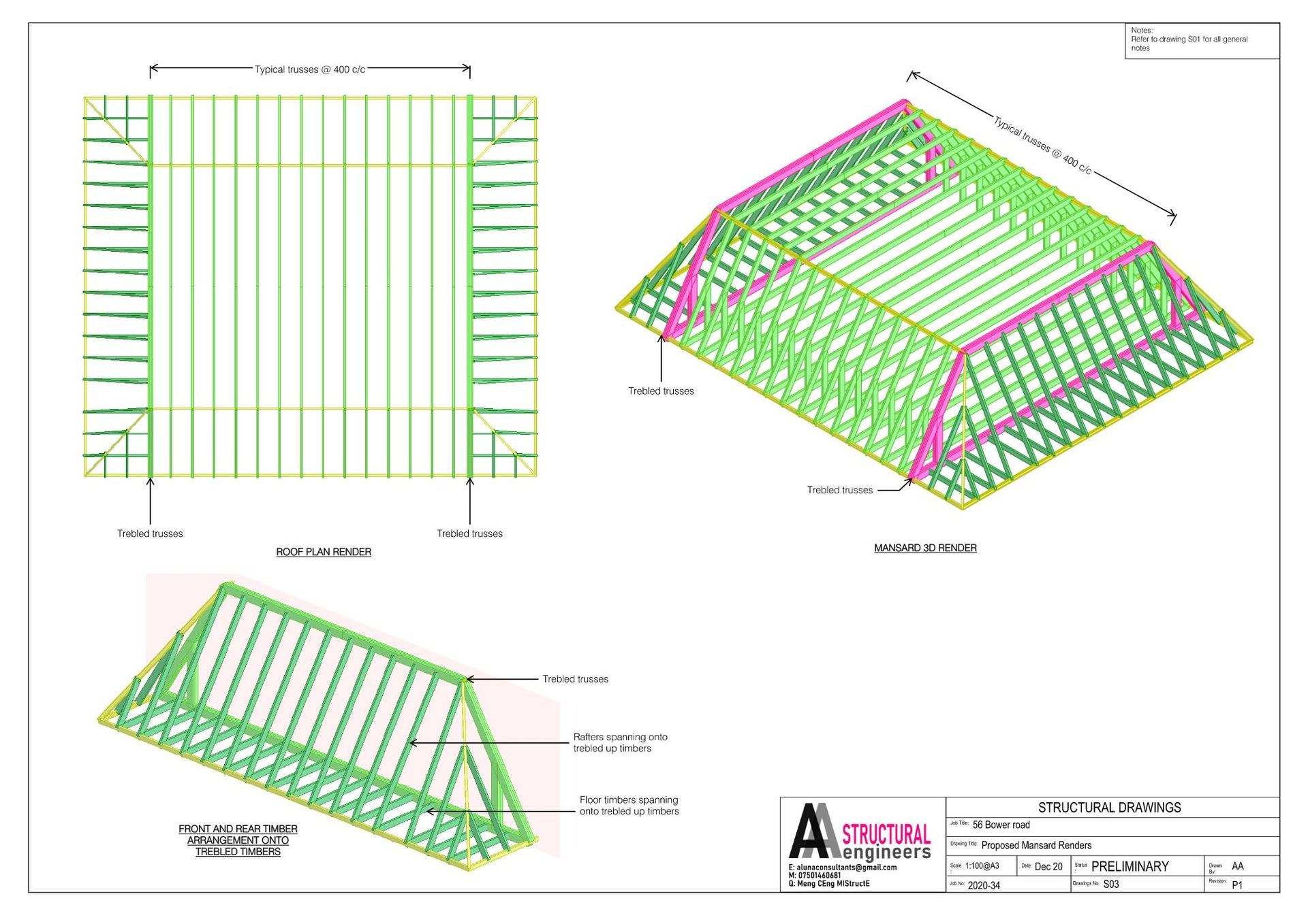 The Bowers Road project involved the construction of new two-storey flats in Bromley, London. Responding to the client's environmental concerns, a dormer roof design was implemented using timber construction exclusively, eliminating the use of steelwork to minimise embodied carbon emissions. The roof design was meticulously crafted as a truss frame, analysed through finite element analysis to ensure structural integrity and alignment with the client's specifications. This sustainable and bespoke approach to construction showcases a commitment to both eco-friendliness and client satisfaction.