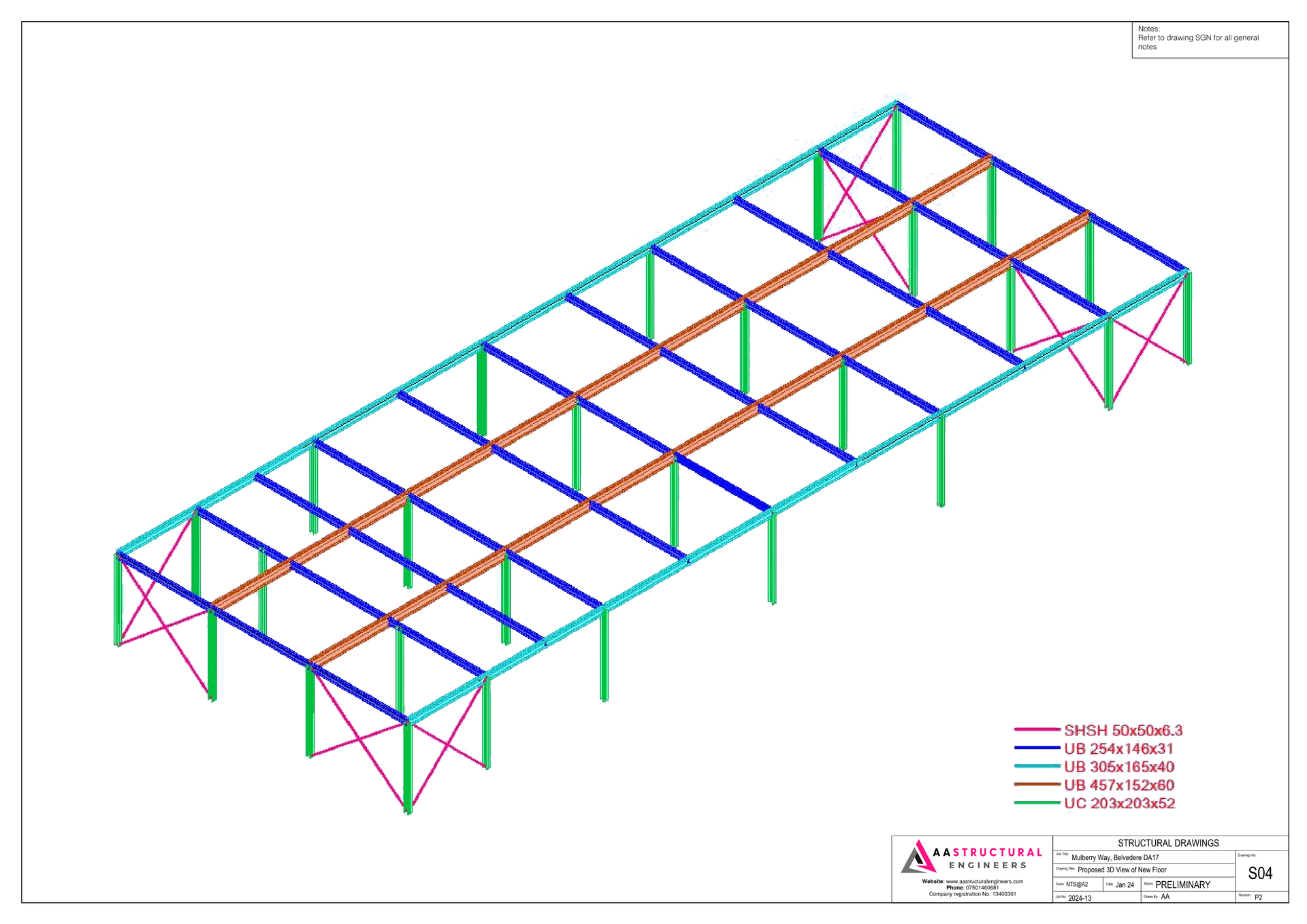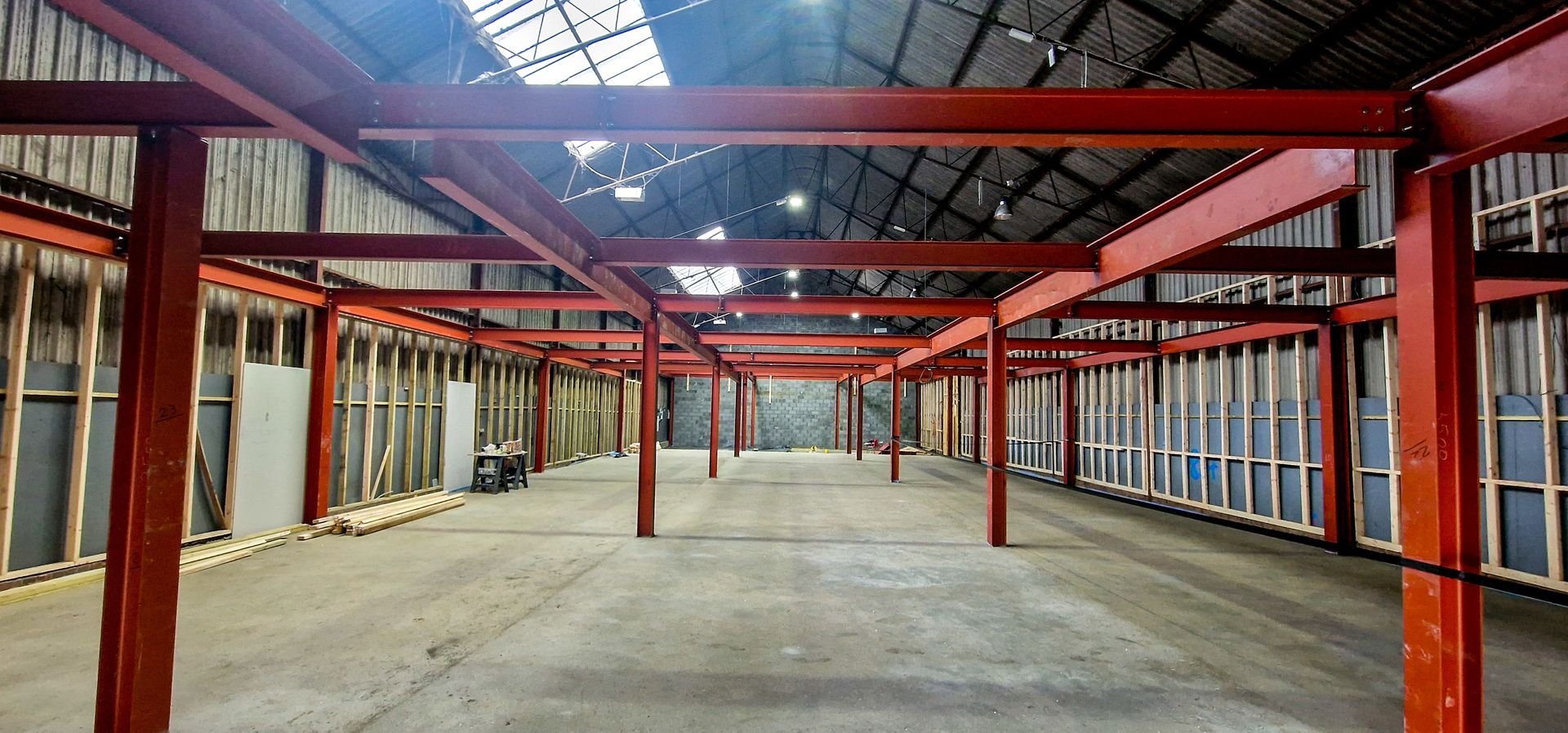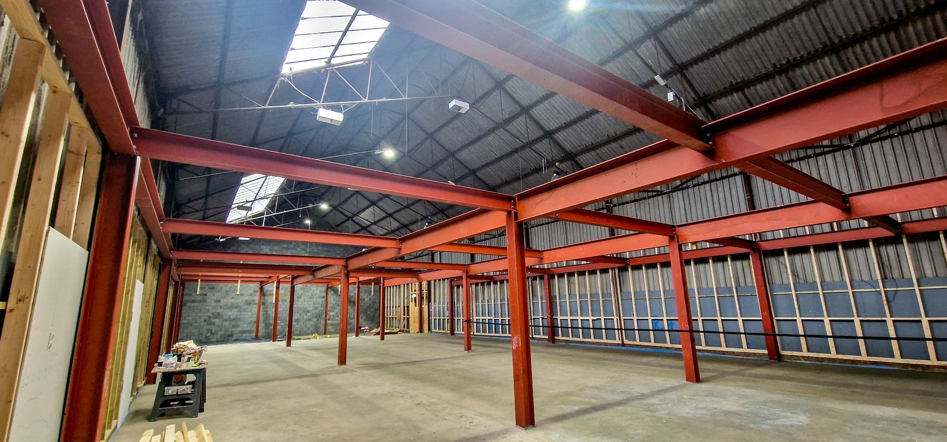 The conversion of the existing warehouse into a church involved significant structural modifications, primarily focused on creating a new floor within the expansive 41m x 15m ground floor area. To support this addition, a new steel frame structure was designed, incorporating braced and stability frames for enhanced structural integrity.
