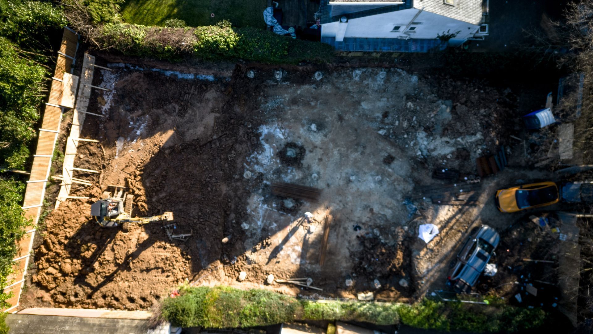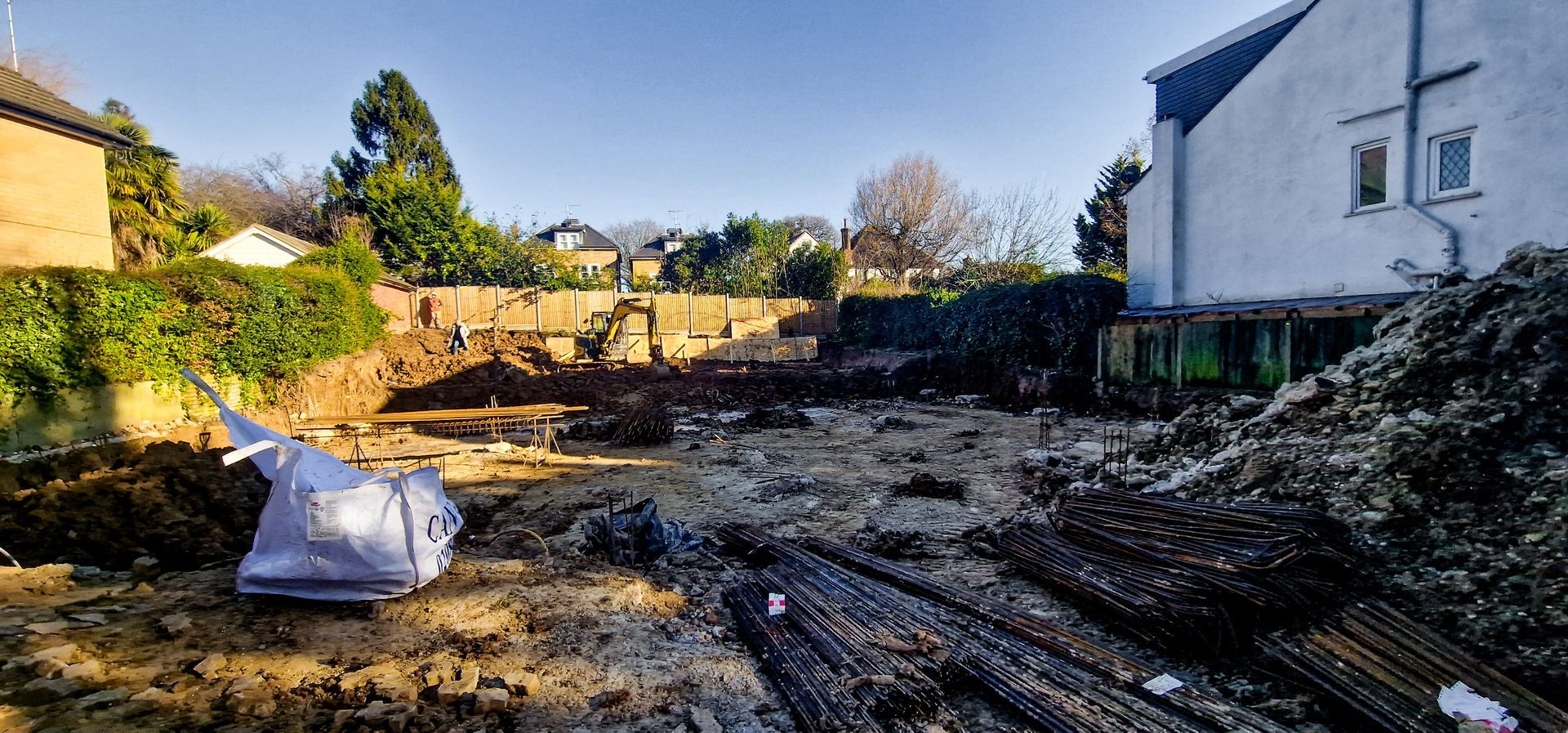 The project involved the complete demolition of an existing detached property to make way for a new, expansive detached house. To maximize the internal head height, the ground level was lowered significantly. This excavation was supported by an RC (reinforced concrete) retaining wall, complemented by piled contiguous retaining walls to ensure stability and prevent soil movement.