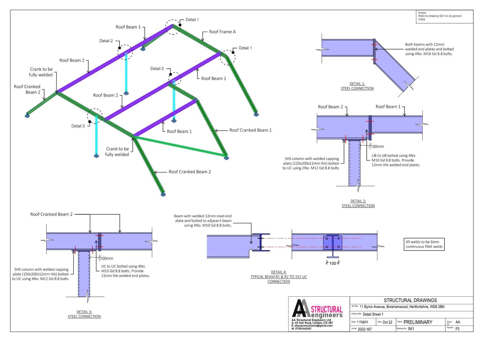 The redesign of this detached bungalow residential house encompassed a rear and side extension, coupled with the addition of a large floor within a new roof structure. Given the complex shape of the roof, the structural design necessitated the use of lightweight steel beams to frame the intricate roof layout and hip beams. The incorporation of finite element analysis was instrumental in ensuring the structural integrity of the roof, given its unique and complex configuration. This comprehensive approach to the structural design not only addressed the aesthetic goals of the project but also ensured the stability and functionality of the new roof structure.