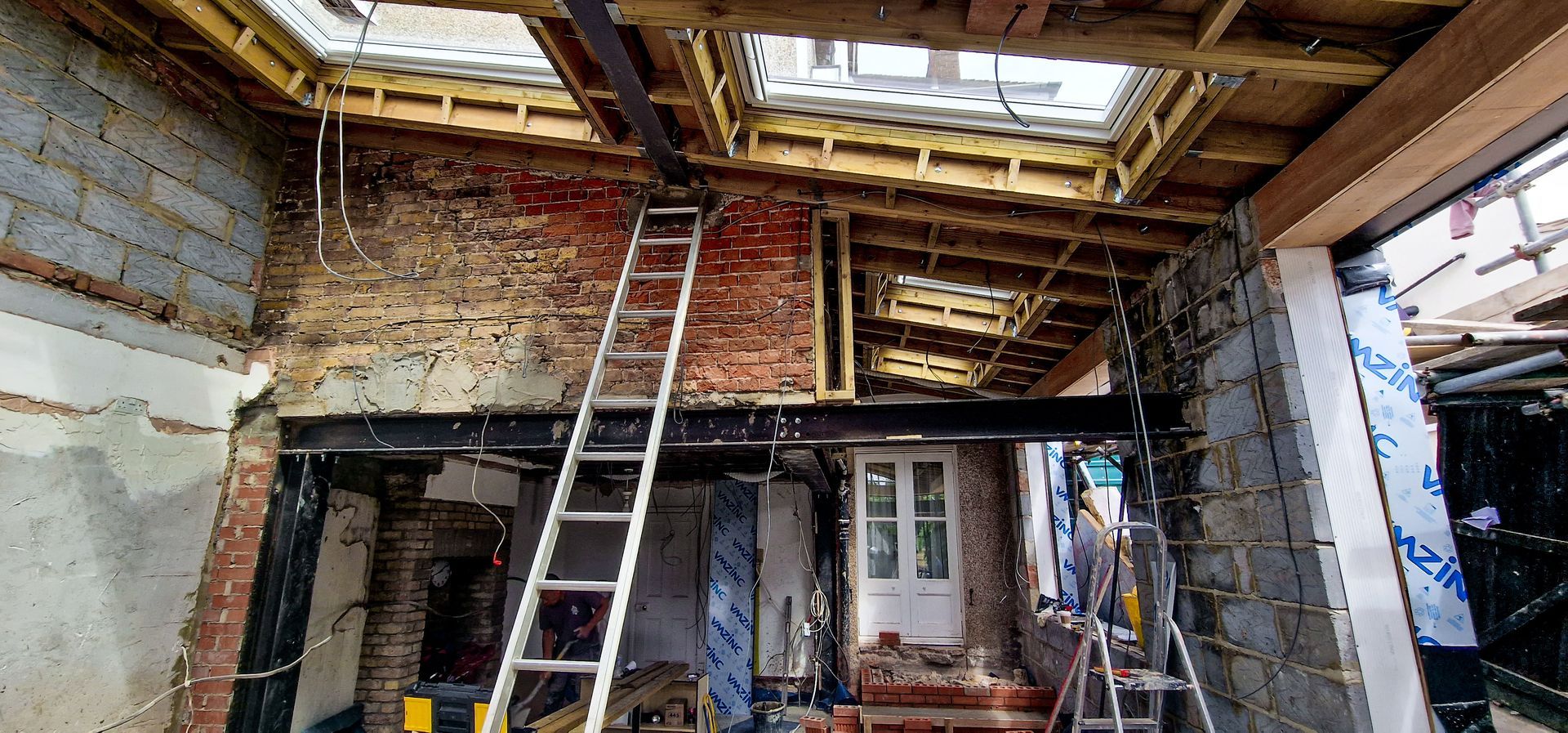 The redevelopment of this existing semi-detached house involved the demolition of the rear outrigger building to make way for a new vaulted pitched high ceiling extension. To support the architectural design and structural requirements, a steel stability frame was essential for the large opening between the existing structure and the new extension.