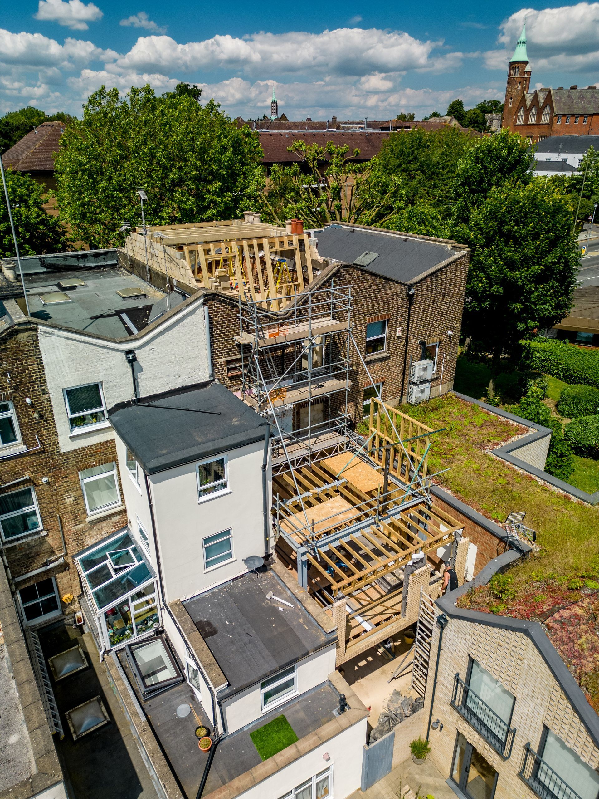 This project involved the complete removal of internal walls in a 3-storey building to reconfigure the layout for its conversion into multiple flats. A key feature of the project was the addition of a new 3-storey rear extension, constructed using a steel frame to provide structural stability and accommodate the expanded living spaces. Additionally, a fourth floor was added to the main building, increasing the overall height and requiring careful consideration of load distribution and structural integrity.