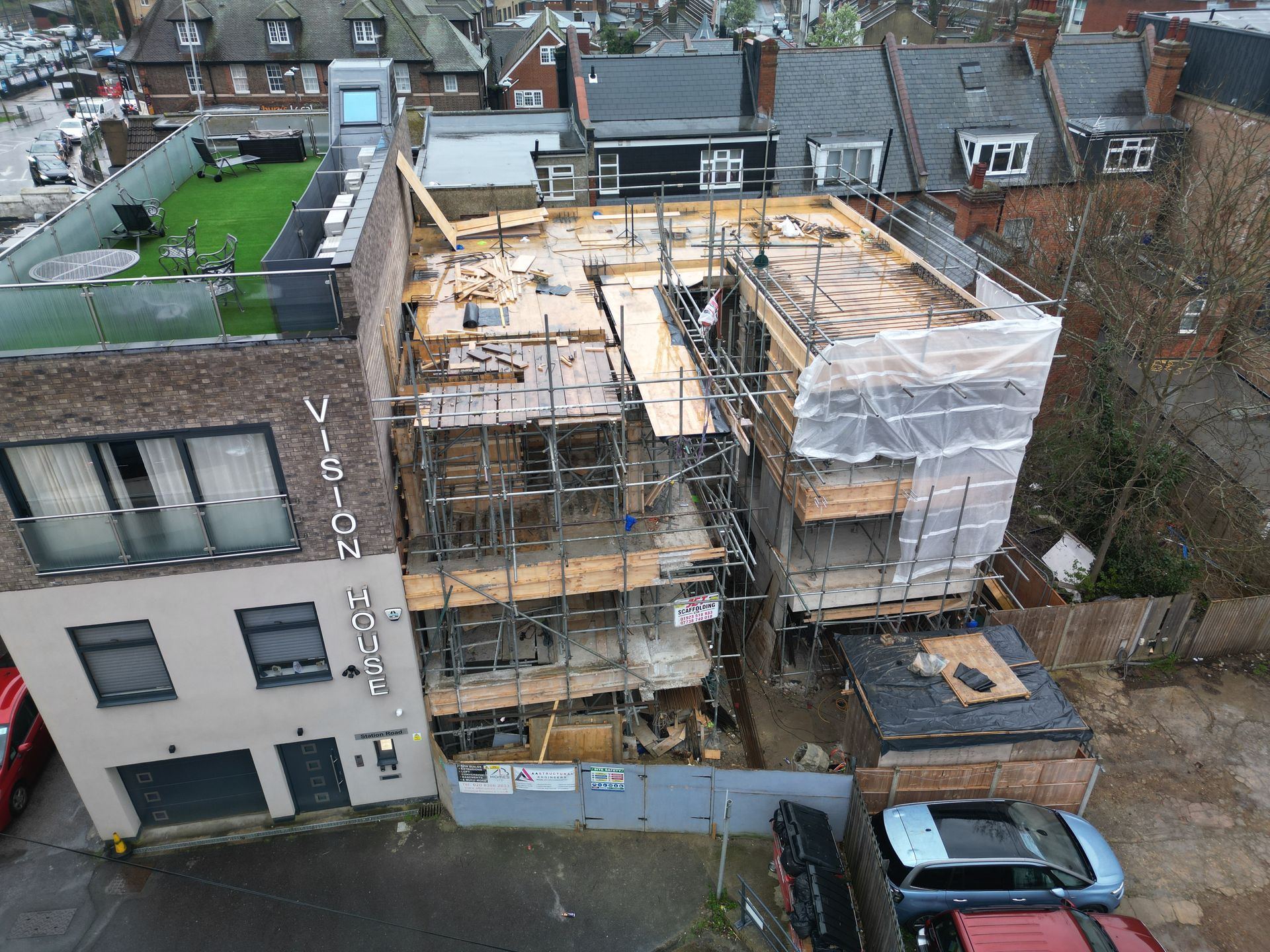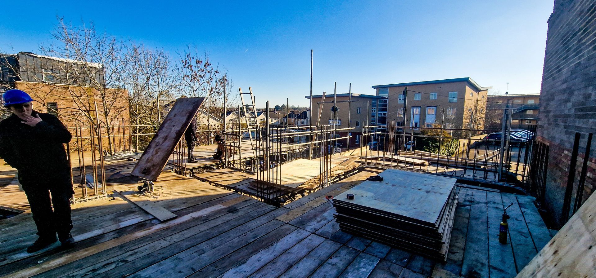 The development is a new five-storey residential block of flats with a distinctive lightweight timber frame penthouse on the top floor. The construction utilizes reinforced concrete (RC) flat slabs supported on blade RC columns and shear walls to ensure structural stability. An RC lift shaft serves a dual purpose by providing both floor slab support and lateral stability.